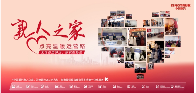 中國(guó)重汽打造的“親人之家”服務(wù)體系,致力于提升卡友的生活品質(zhì)和職業(yè)尊嚴(yán),為卡友們提供免費(fèi)停車、免費(fèi)休息、免費(fèi)餐食、免費(fèi)住宿、免費(fèi)洗浴、免費(fèi)洗衣等舒適如家的暖心服務(wù)。服務(wù)從車輛延伸至人,中國(guó)重汽通過(guò)“親人之家”為卡友們提供更多的關(guān)愛和幫助,構(gòu)建有溫度的行業(yè)生態(tài)。